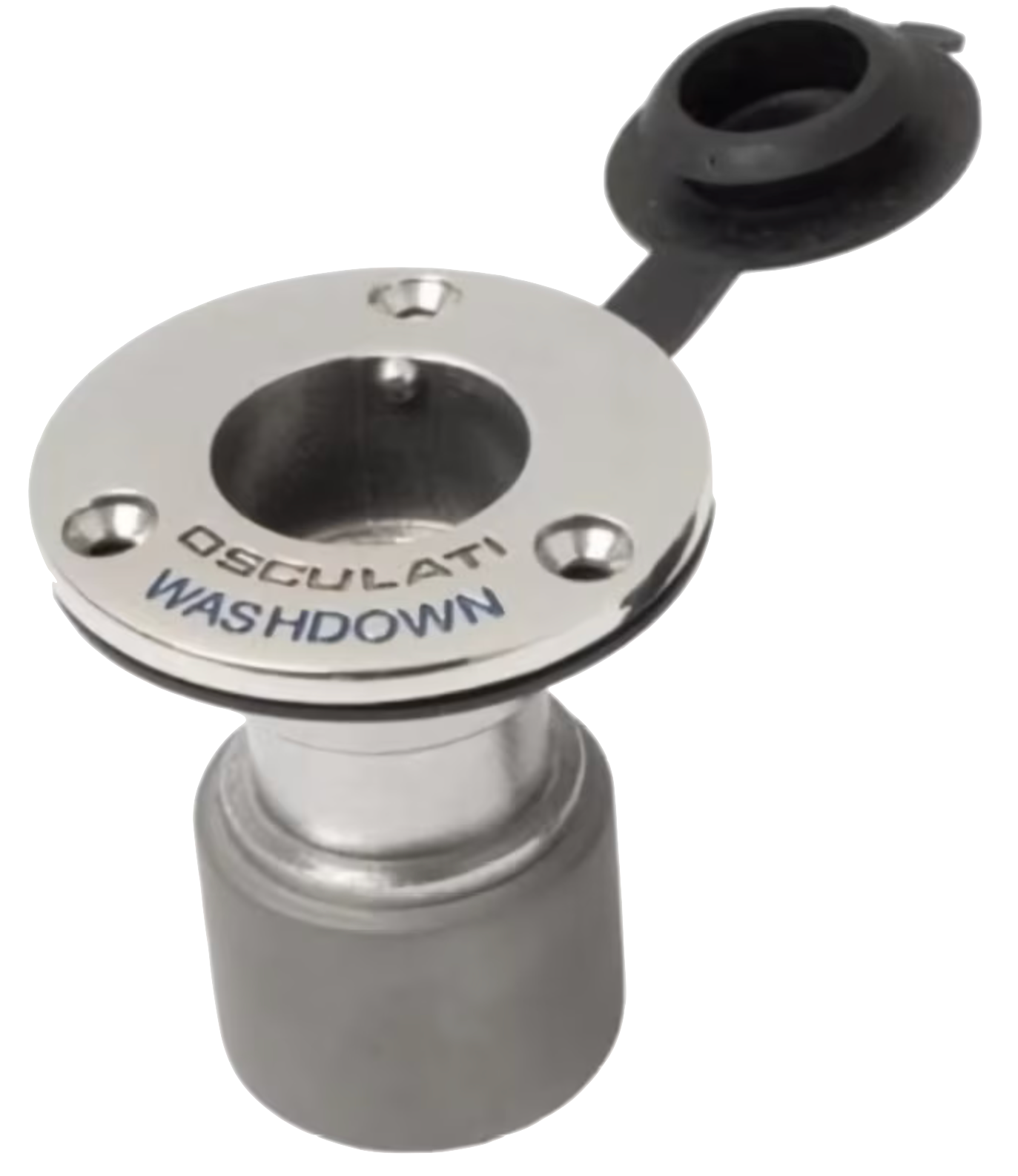 The standard bayonet fitting (commonly used for deck-wash systems) is compact, flush-mounted, and available on request. It can also function as originally intended, using the included fitting. A water mixer — not included but available on request — should be installed inline before the shWOWer handle, which operates simply as an on/off valve. Retrofitting to an existing system is straightforward: keep your old hose-and-faucet setup and just add the new pipe for the shWOWer.